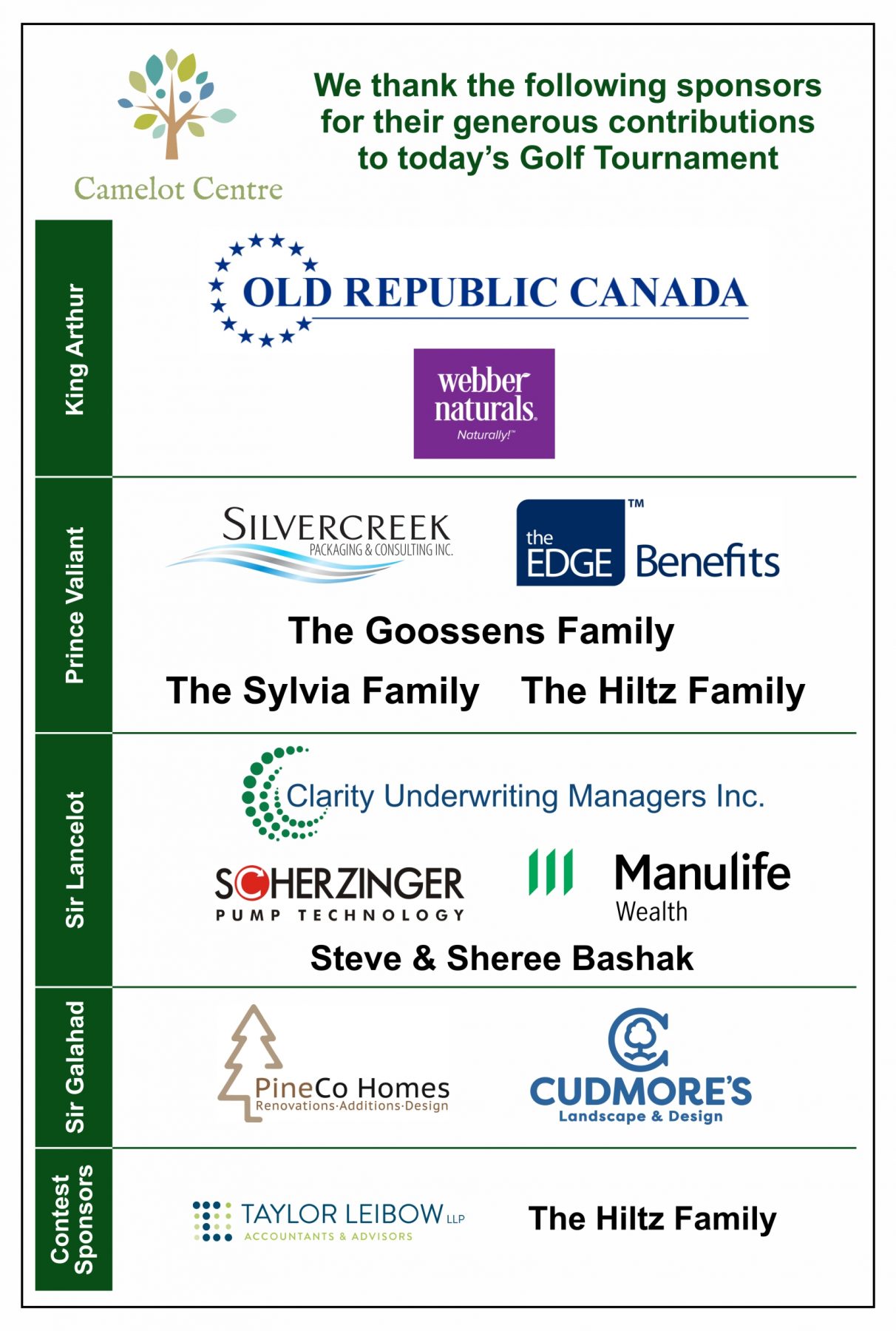 Prince Valiant Sponsors: Edge Benefits Group: The Sylvia Family: The Hiltz Family: The Goossens Family: Silvercreek Packaging and Consulting Inc.